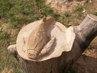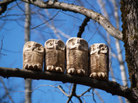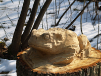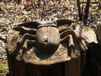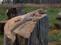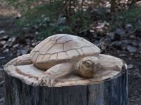 Staigājot pa takām var aplūkot dažādas koka skulptūras. Tajās ir atveidoti gan dažādi dzīvnieki, gan pasaku un teiku tēli, gan arī pēc vēstures avotiem veidotas radības. |