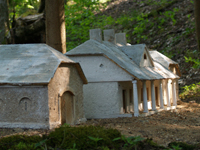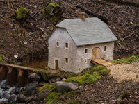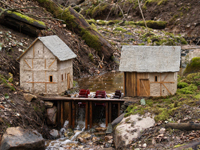 Iztēlojoties parkā esošo gravu kā miniatūru kalnu ainavu, mērogā iekomponētas dažādas miniatūras ēkas. Aplūkojot gravu un pievienojot mazliet iztēli, var iedomāties kalnu upes ieleju. Gravā tekošais ūdens, plūstot pār akmeņiem un kritušajiem kokiem, atgādina krāčainu kalnu upi miniatūrā. Ūdens gravās nav tikai vasaras karstajā sezonā. Tas ļauj ūdensdzirnavas uztaisīt pietiekami reālas un šķietami darbīgas. Veiksmīgi fotografējot šādu objektu mērogs tiek pilnībā nojaukts.